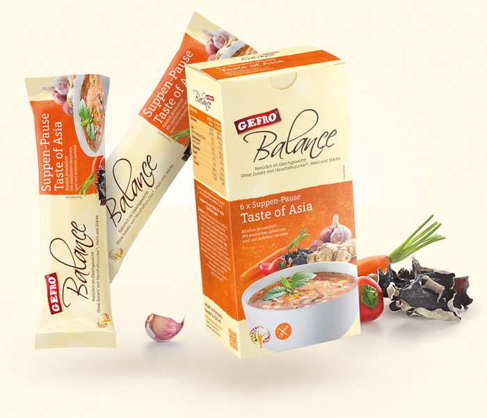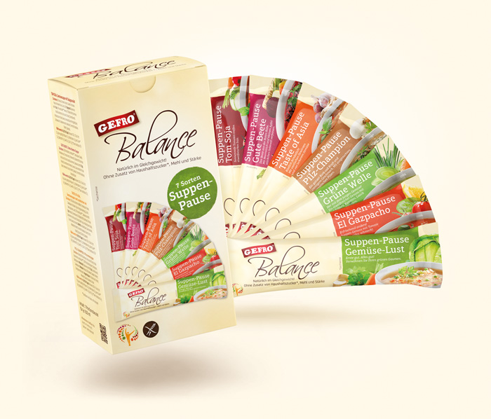 Speziell für den unkomplizierten, aber eben auch leckeren und ausgewogenen Genuss entstanden die einzigartigen Balance Suppen-Pausen. Sieben leckere Sorten im praktischen Portionsbeutel für jeweils satte 200 ml. Moderner, natürlich-leckerer Genuss mit konsequent stoffwechselorienterter Rezeptur. Einfach mit heißem Wasser aufgießen, umrühren, 1 Minute warten … schon fertig!